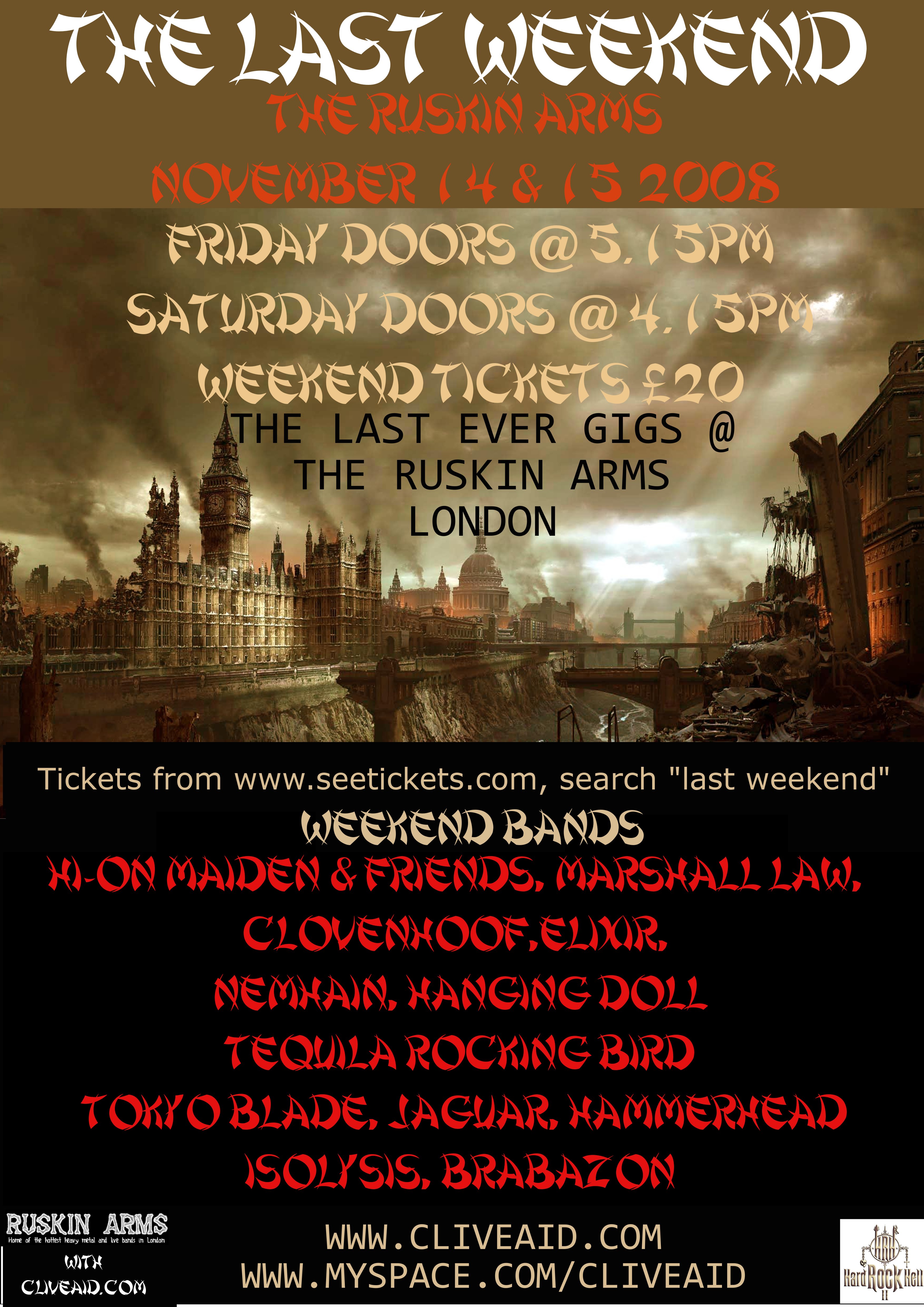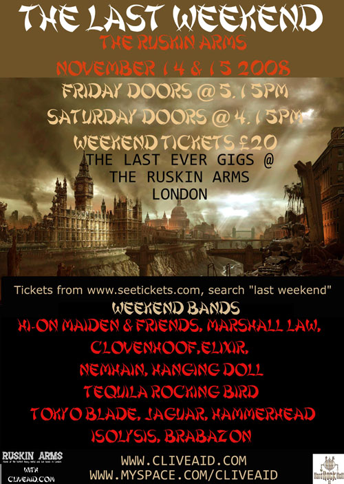 Clive Aid announce Hi-on Maiden to headline Ruskin Arms 'The Last Weekend' show!