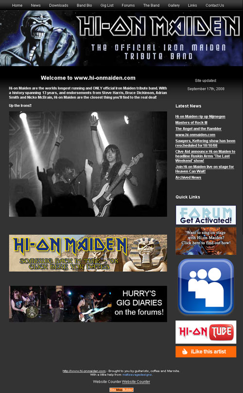 As you may have noticed when you just arrived at our site things have changed a bit at www.hi-onmaiden.com! Your humble webmaster has been working feverishly behind the scenes to bring you this new, if somewhat *ahem* familiar look.